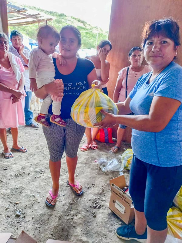 So hilft jetzt die Pfarrei von Bagua Grande, den notleidenden Familien beim Verteilen von Nahrungsmittelpaketen mit Hygieneartikeln – für all diejenigen, die noch in den Zeltstädten ausharren und denen, die vorübergehend ein Zimmer beziehen konnten.