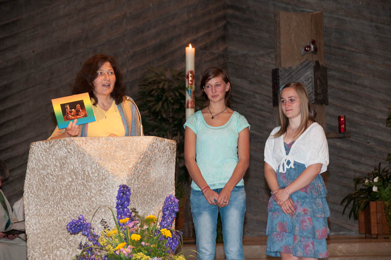 Dagmar Braun, Vorsitzende des Gemeinsamen Missionsausschusses der KirchengemeindeDunningen verabschiedet Lisa Wernz und Hannah Kubon für ein Jahr in die Dunninger