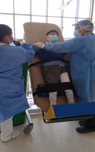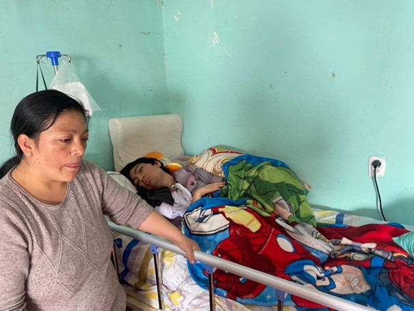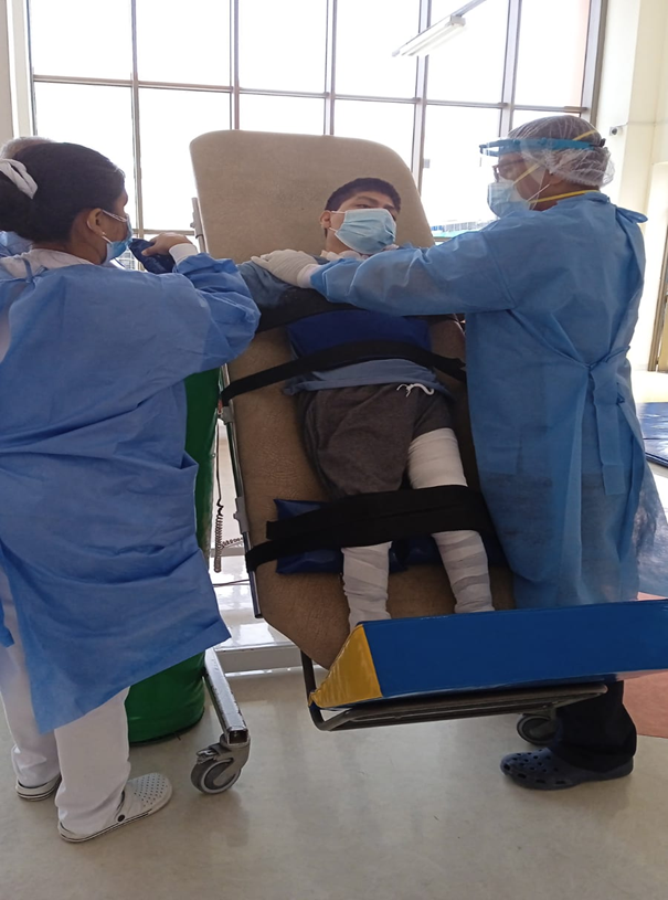 Seine Mutter, die sich praktisch in Vollzeit um Diego kümmern muss erzählt, dass es durch Physiotherapie gewisse Verbesserungen in seinem Zustand gibt, dass er die Glieder bewegt und auch teilweise durch die Nase atmet. Um gerade letzteres zu fördern haben die Physiotherapeuten die Beschaffung einer Liege, auf der der festgeschnallte Patient in eine aufrechte Position gebracht werden kann, empfohlen.