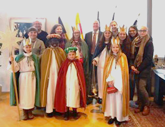 Jährlich wird eine Gruppe von Herrn Landrat Dr. Wolf-Rüdiger Michel ins Landratsamt eingeladen. Dieses Jahr wurde die Sternsinger-Gruppe aus Dunningen aus den Bewerbern ausgelost, die sich gemeinsam mit der BDKJ-Dekanatsleitung auf den Weg ins Landratsamt machte. Nachdem die Sternsinger ihre Botschaft vom Weihnachtsfrieden in Lied und Spruch verkündet hatten und die Bürotür des Landrats mit dem Segensspruch versehen war, wurden die Besucher von Herrn Landrat Dr. Michel noch zu einer kleinen Stärkung eingeladen.
